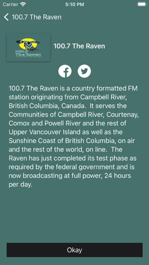 100.7 The Raven is a country formatted FM station originating from Campbell River, British Columbia, Canada. It serves the Communities of Campbell River, Courtenay, Comox and Powell River and the rest of Upper Vancouver Island as well as the Sunshine Coast of British Columbia, on air and the rest of the world, on line. "The Raven" has just completed its "test" phase as required by the federal government and is now broadcasting at full power, 24 hours per day. Our "official" opening will take place in early November, 2019. The station is owned and operated by the Homalco First Nation and from time to time features indigenous Canadian country music as well as a variety of popular "New Country" tunes. 100.7 The Raven covers local, regional, national and international news events and will often be seen "on location" at community events.