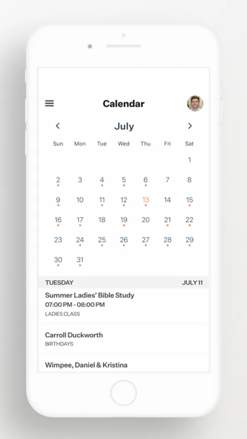 In addition, access all of Congregate's other member modules plus any user-added member pages right inside the app: