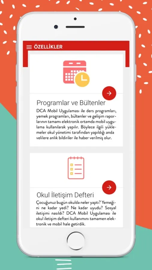 Çocuğunuz bugün okulda neler yaptı? Yemeğini ne kadar yedi? Ne kadar uyudu? Sosyal iletişimi nasıldı? DCA Mobil Uygulaması ile okul iletişim defteri kullanımını tamamen elektronik ve mobil hale getirdik.