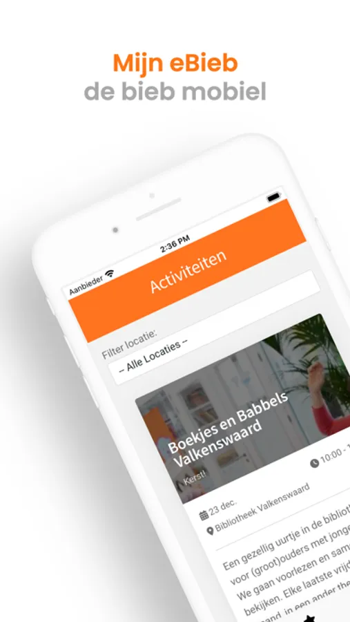 Met de Mijn eBieb, kun je jouw geleende materialen verlengen, reserveren en inschrijven voor activiteiten bij een van de aangesloten bibliotheken. Ook kun je jouw nieuwsbrief instellingen snel en gemakkelijk veranderen en krijg je notificaties wanneer je jouw geleende materialen weer moet inleveren (of je verlengt ze om zo wat langer plezier te hebben).