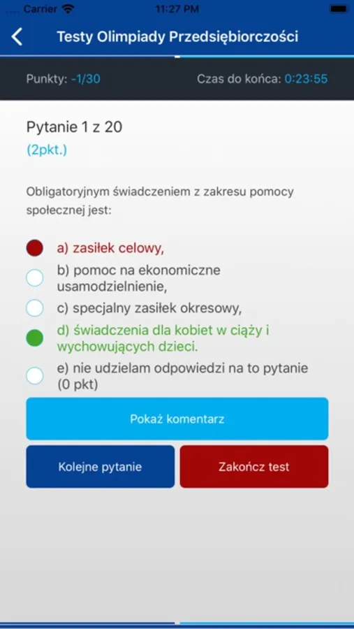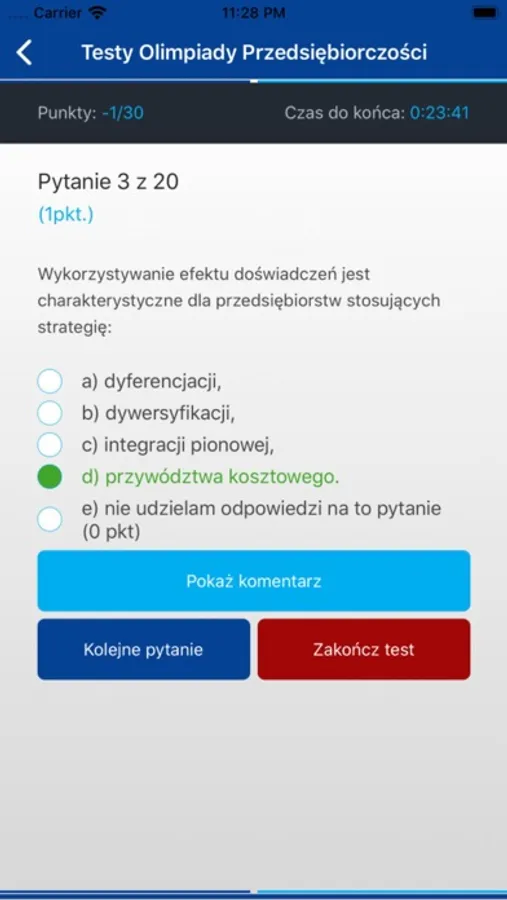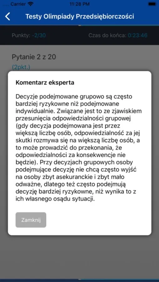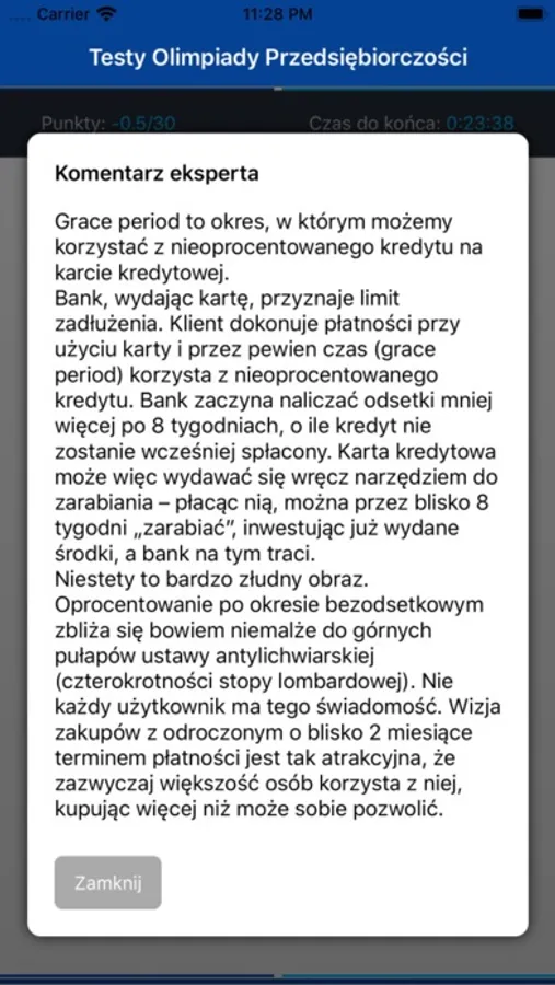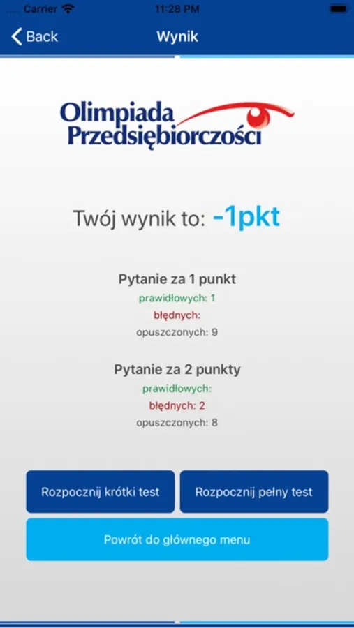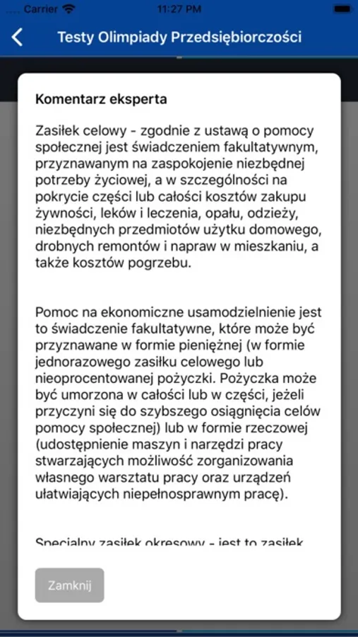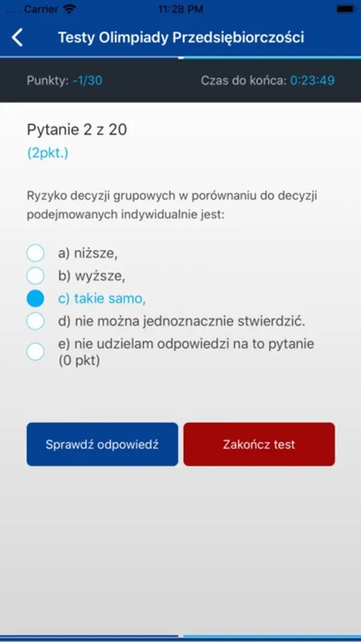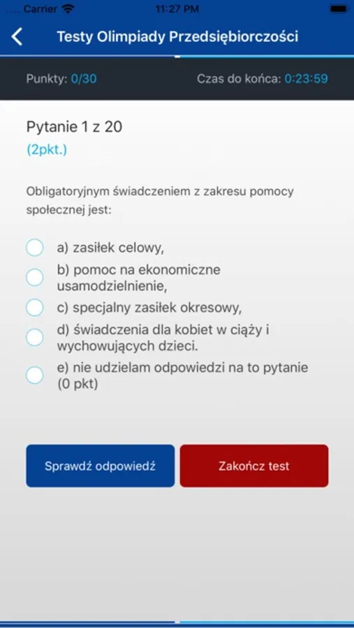 Aplikacja „Olimpiada Przedsiębiorczości” umożliwia efektywny trening przed zawodami Olimpiady poprzez rozwiązywanie pytań z poprzednich edycji zawodów.