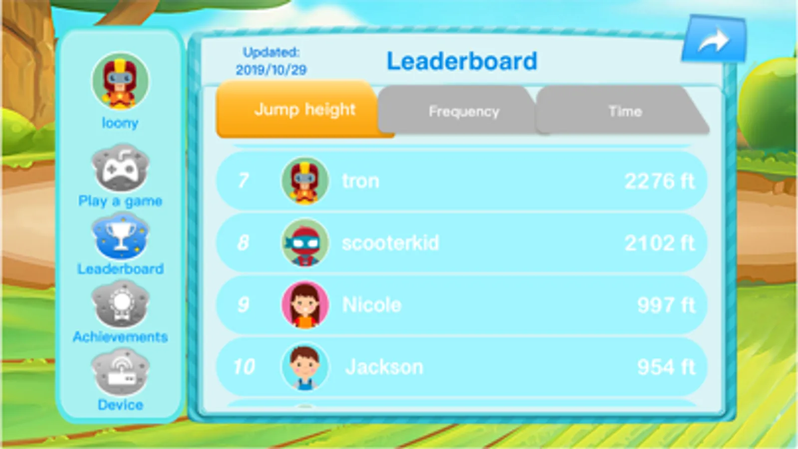 • Compete with friends to get the highest score on number of jumps, jump height, and exercise time.