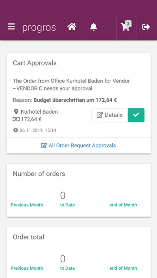 This app is the optimal extension to handle the order processes in your company even when you are away from your desk. Order as usual from your suppliers and keep an eye on your open purchase orders. You need a compatible device with appropriate settings for country or region, the app must be activated for your company, and you have to be a registered progros Order user to benefit from this app.