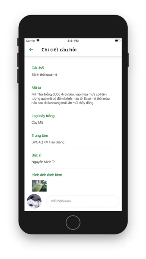 + Hỗ trợ nông dân đặt câu hỏi về cây trồng cho bác sĩ.