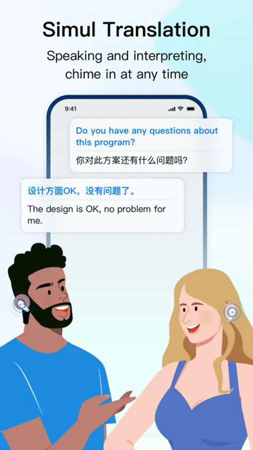 Breaking the language barriers in your work, study, traveling, and life. Completely hands-free, no need to pass the device around.