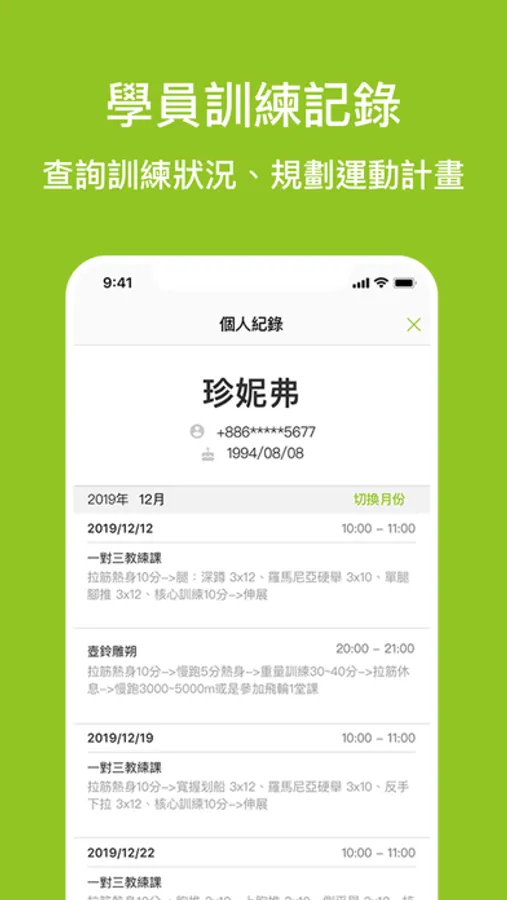 - 紀錄學員訓練情形,方便學員透過APP也能查看。