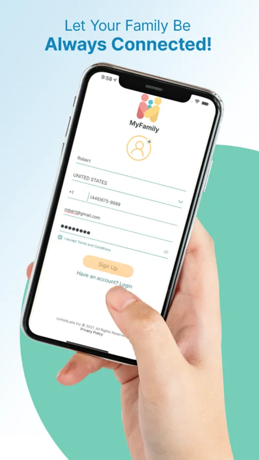 Privacy Policy and Terms of services: http://unfoldlabs.com/myfamily/privacypolicy.html