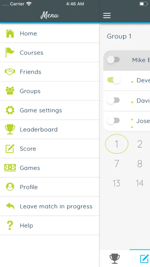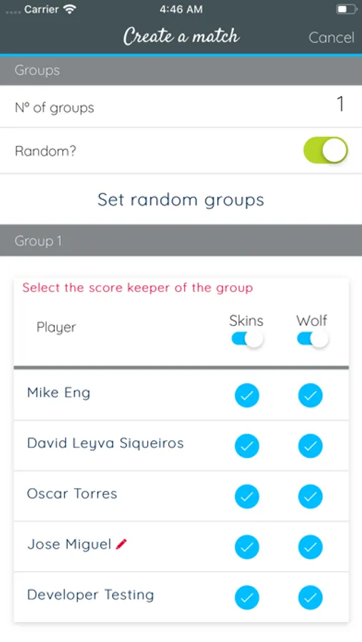 You can add friends that use the app and create matches directly from your friends list, or you can create groups for easier access to players.