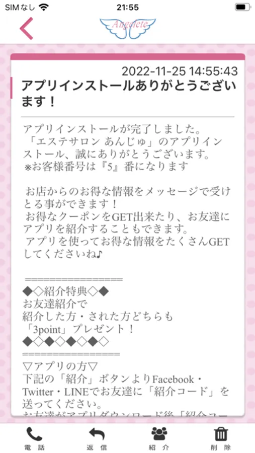 あんじゅのアプリをSNSを通じてお友達に紹介する事ができます。