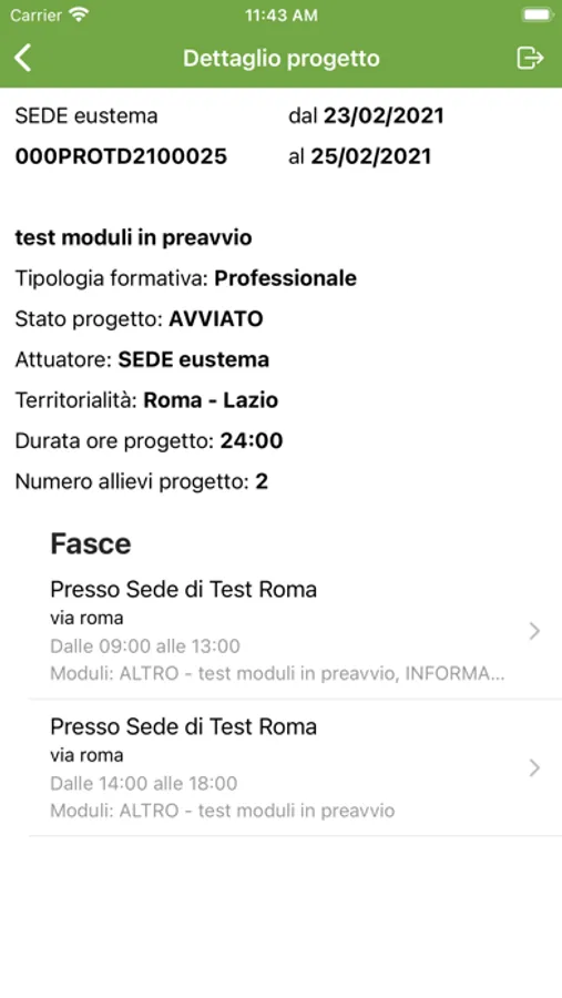 - Visualizzazione delle fasce orarie dei corsi per i quali l'utente è stato selezionato come Docente