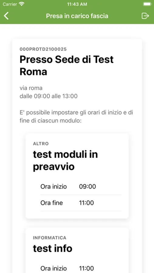 - Presa in carico della fascia e, di conseguenza, della relativa lezione associata