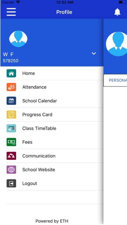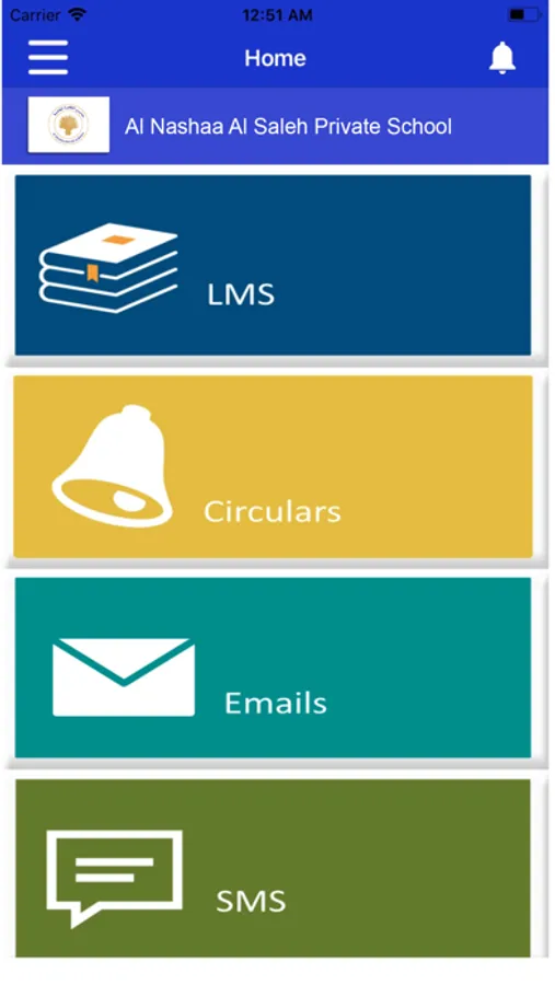 Mobile interface for parents of students studying in Al Dhafra Private Schools, Abu Dhabi, for accessing information about their children.