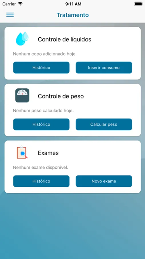 Na sessão para pacientes em hemodiálise, foram desenvolvidas funcionalidades de auto monitoramento direcionadas a auxiliá-los no controle da ingestão de líquidos e ganho de peso entre as sessões, monitorização mensal dos resultados dos principais exames laboratoriais, informações sobre o tratamento, como os cuidados com o acesso vascular, orientações nutricionais, agendamento de consultas, exames e medicações, entre outras. O aplicativo disponibiliza aos usuários transplantados renais orientações sobre o período pós-transplante, com sinais e sintomas importantes no diagnóstico precoce de infecções, dúvidas frequentes, informações gerais e nutricionais, registro e alerta para medicações, consultas e exames, informações sobre as medicações imunossupressoras, entre outras. Adicionalmente, o Renal Health pode ser utilizado por familiares e cuidadores de pessoas com doença renal crônica para auxiliar no esclarecimento de dúvidas e na adaptação ao tratamento.