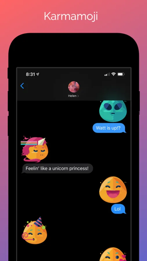 ∞ Sending the perfect Karmamoji in any situation while making your friends, family and loved ones smile and laugh hysterically, that's Karma