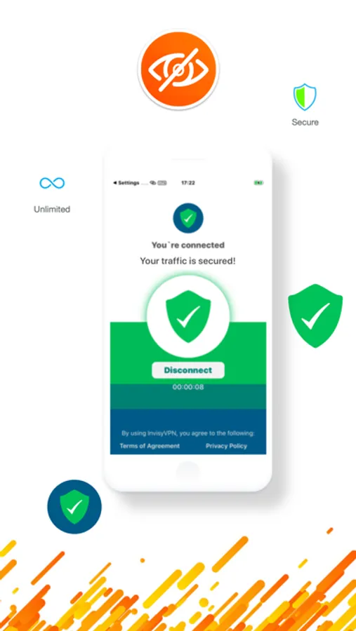 The InvisyVPN is using the latest VPN technology based on Wireguard protocol, best encryption with great speed.