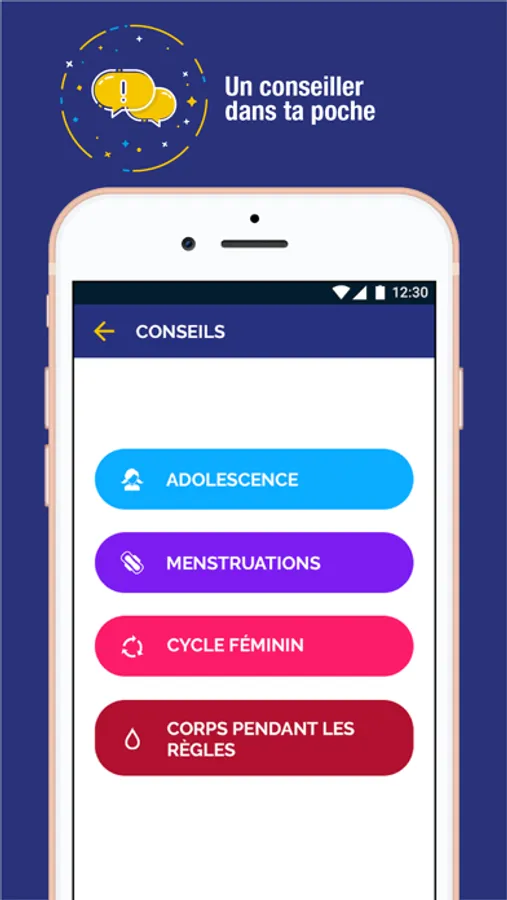 - Des descriptions détaillées des événements de votre cycle menstruel, complétées par des références médicales et scientifiques.