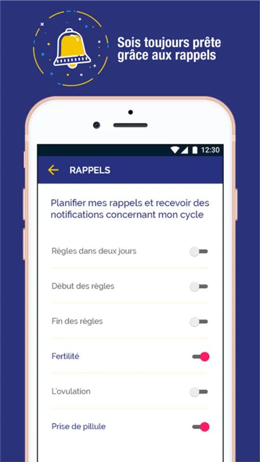 - Notification du suivi des règles, de la fertilité et de l'ovulation