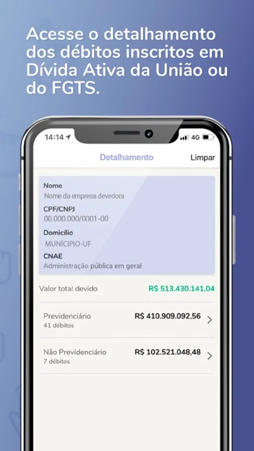 O Dívida Aberta é um aplicativo da Procuradoria-Geral da Fazenda Nacional (PGFN) que apresenta os devedores inscritos em dívida ativa da União ou do Fundo de Garantia do Tempo de Serviço (FGTS) em situação irregular.