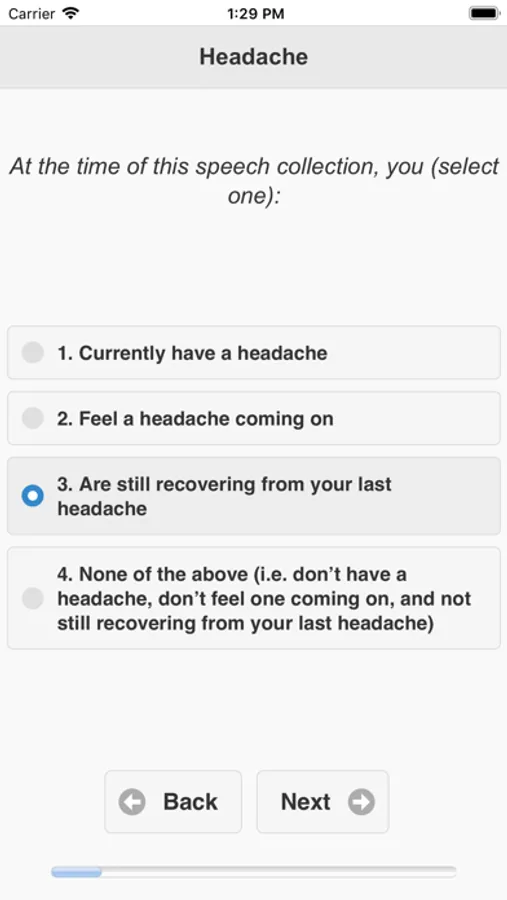 A closed, participants-only app for gathering speech data from participants in a post-traumatic headache study conducted by the Robert Fromont, Dr. Catherine Chong, Dr. Todd Schwedt, and Dr Visar Berisha.