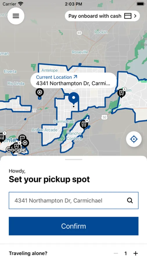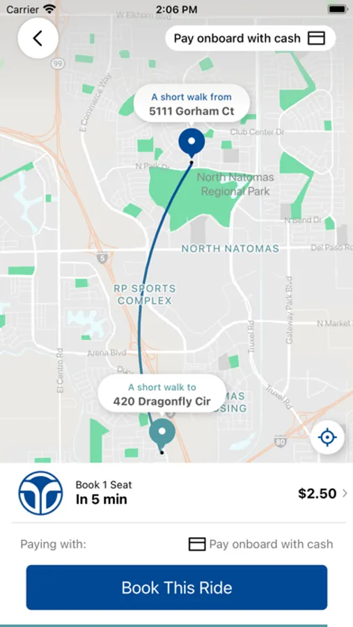 Current service areas offer curb-to-curb service where passengers are picked up and dropped off at the address they indicated when scheduling. New service areas offer corner-to-corner service where passengers are picked up and dropped off at the nearest corner or ‘virtual bus stop,’ which is usually within a block or two of their pickup or drop-off location. In the Downtown zone only, stops are at designated SacRT bus stops.