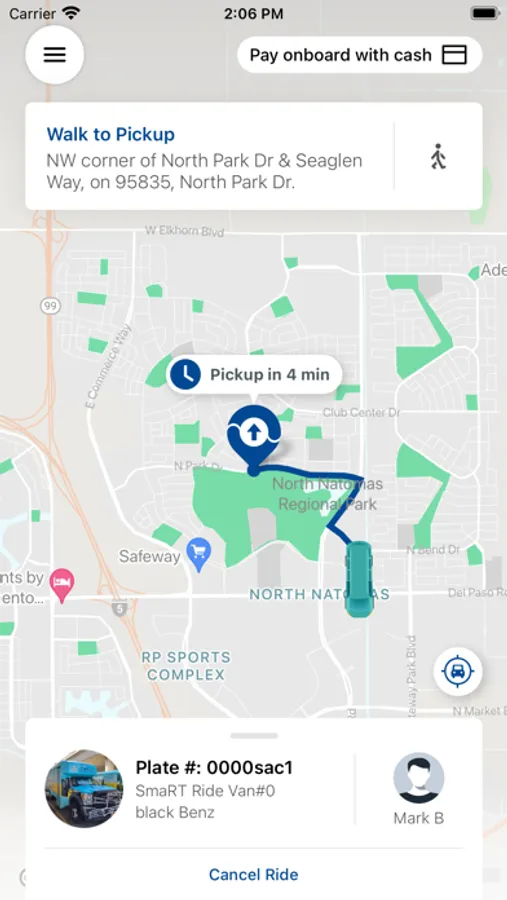 SmaRT Ride takes cash and all SacRT fare media including Connect Card, Zip Pass, RydeFreeRT and discount passes.