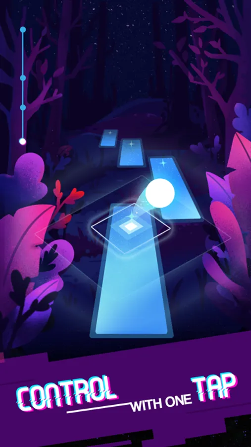 Dancing Planet is a music game with only one finger tap control, just tap the screen to make a jump from tiles to tiles. You control a planet (like a ball) or a spaceship, to fly (or roll) on the floating tiles in the space.