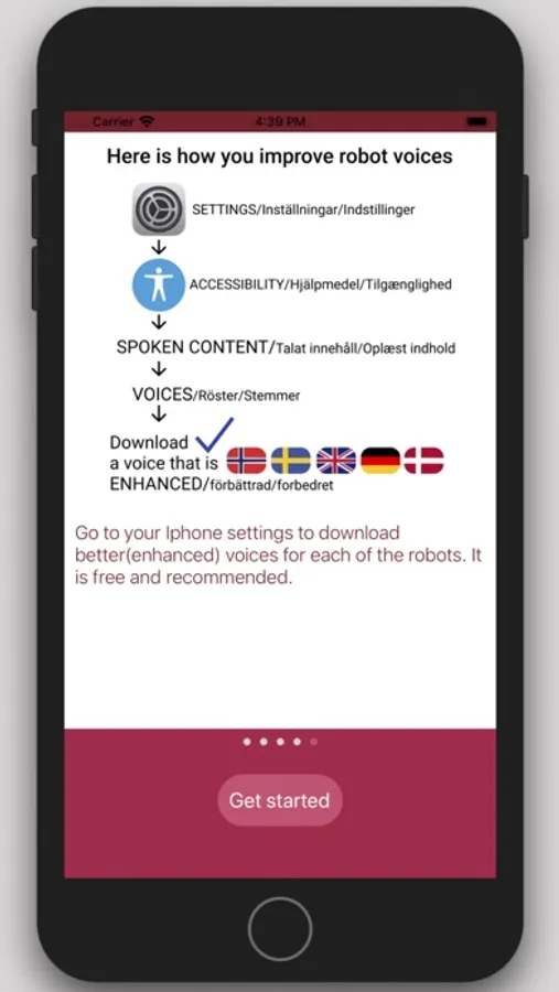 There are two English voices in the app and the other voices use the phone´s built in voices. These can be improved in your phone's settings, you just download enhanced voices in the language you want which is free of charge.