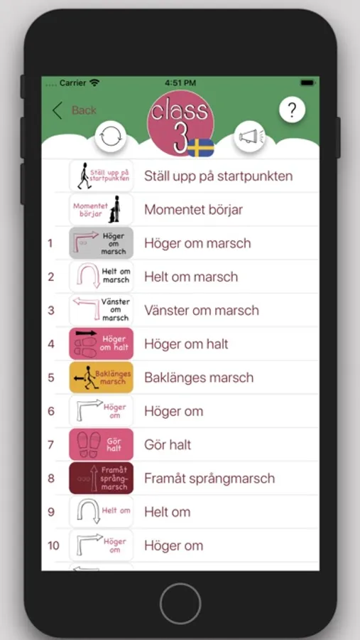 The phone puts together unique programs every time. No matter what language the steward speaks, the rules are the same. The programs can be customized, for example fast pace, steps etc can be excluded, and the total time can be set.