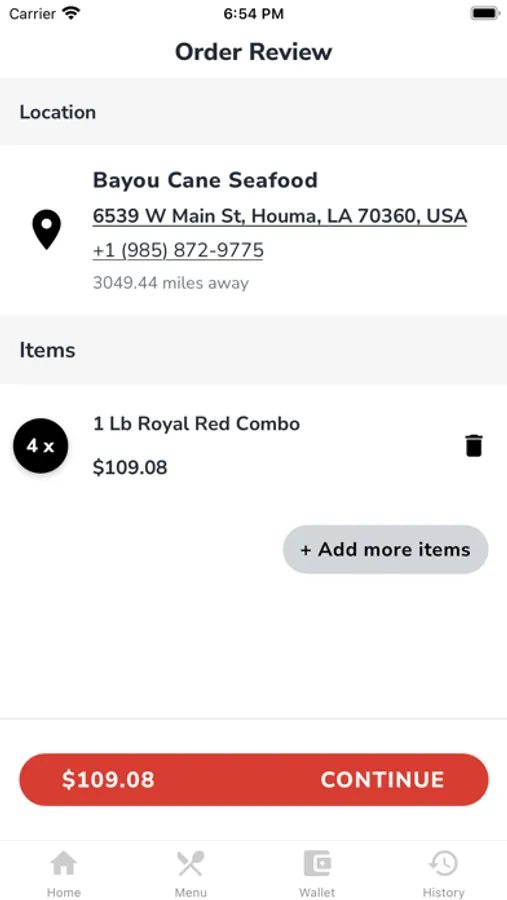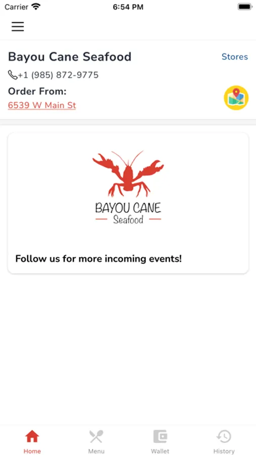 Bayou Cane Seafood's loyalty app is designed for loyal customers.