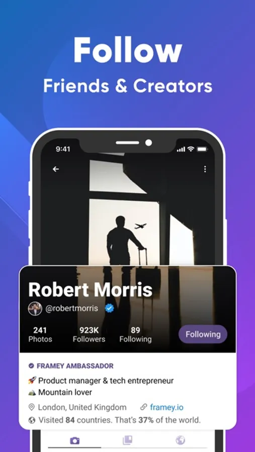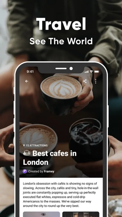 Travel & explore the world, take pictures, and share those moments with others easily with Framey. Plan your holidays by being inspired from other content creators & travel channels. On this travel app, we have gathered a lot of travel content creators to inspire you, so get your guide & transform dream photos into memorable trips!