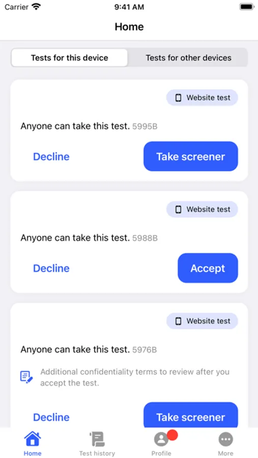 Answer screening questions to match with test opportunities. New tests are released all the time! To earn money online as a website tester (and apps and in-person experiences, too) you need a device with a microphone and an active PayPal account.