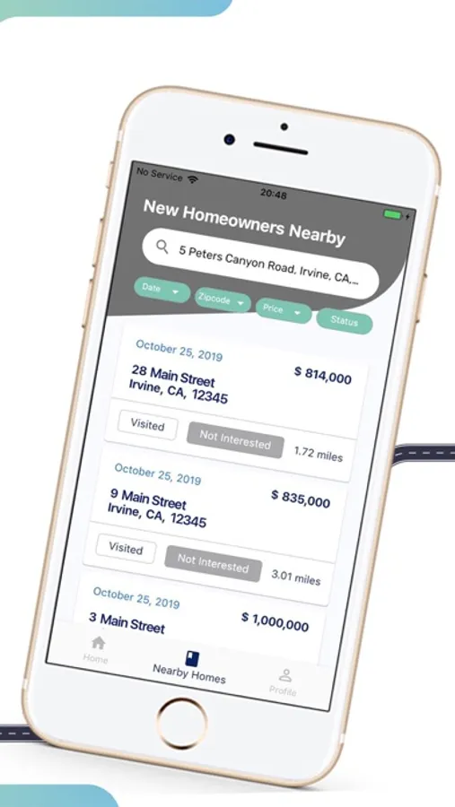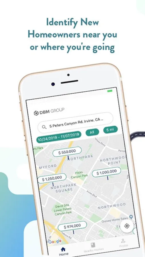 Reach New Homeowners in your marketing territory by identifying those near you or where you're going. With the NHO Territory Marketing App, you can get directions to New Homeowners you want to visit and track and save those homes visited.