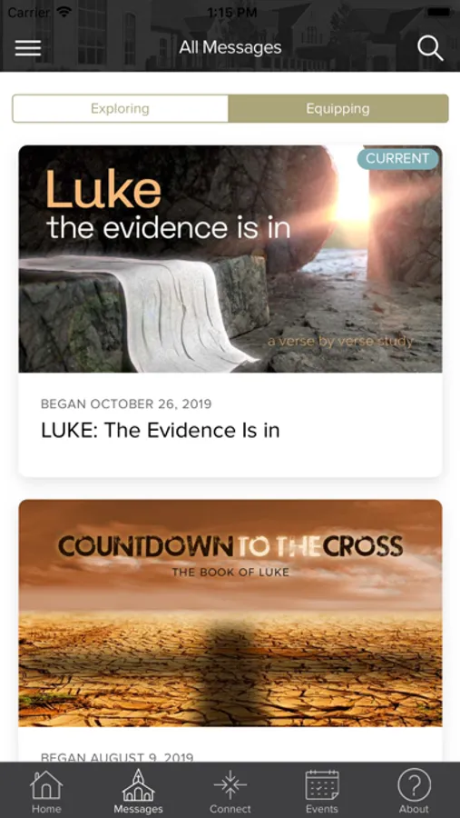 The Equipping Service is designed for those who are maturing in their faith, featuring participatory worship music, times of prayer and reflection, monthly communion, and expository verse-by-verse teaching focused on specific books of the Bible. Equipping Services are held on Saturday at 4:30 a.m. and Sunday at 8:50 a.m.