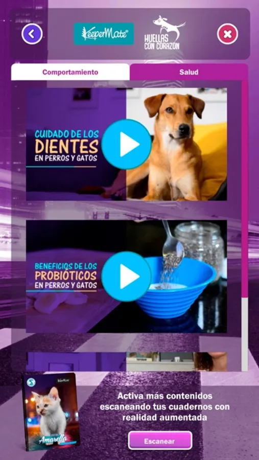 • Modo Educativo: Aprende sobre el comportamiento y como cuidar la salud de tu peludito