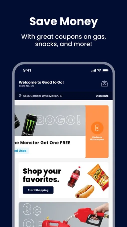 Save money at Good To Go Stores with great coupons on gas, snacks, and more! Simply tap the orange redeem button and show your phone at purchase to redeem your coupons.