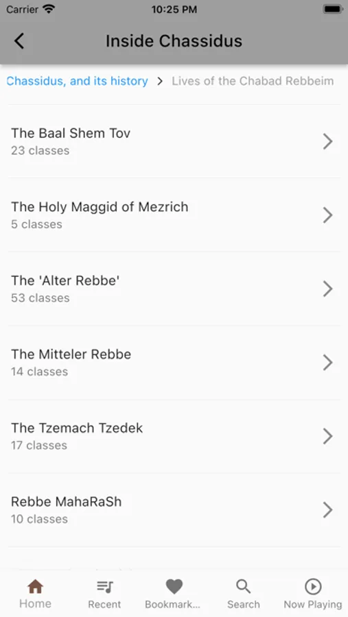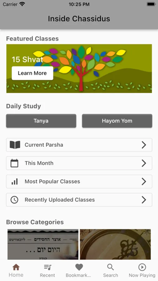 * Quick access to timely classes - today's Tanya, this weeks Parsha, and more