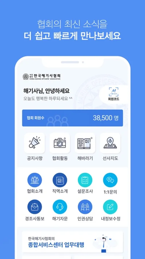 새로운소통, 해기사들의 커뮤니케이션 플랫폼. 한국해기사협회에서 회원들과 협회간의 소통을 원활하게 하고자 구축한 앱입니다.