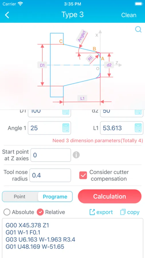 4. Taper calculation: to calculate the taper, you can enter the distance between tool starting and tool returning, and compensate the tool tip.