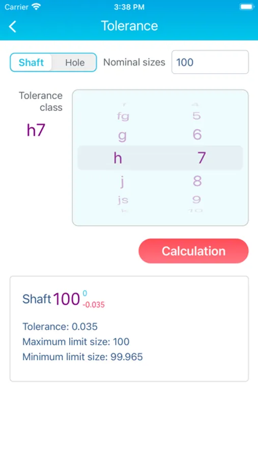 8. Tolerance calculation: quick query of hole shaft fit tolerance