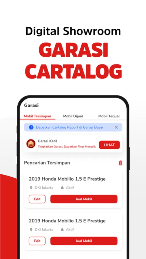 Bagi mereka yang ingin menjual mobil bisa memanfaatkan fitur showroom digital Garasi Cartalog. Fitur ini dilengkapi sistem yang efektif untuk mengelola stok unit, sehingga sangat cocok untuk pengusaha dealer. Namun individu yang ingin jual beli mobil juga bisa memanfaatkannya.