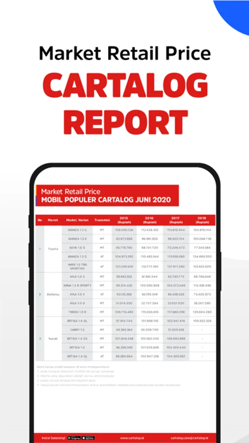Sebelumnya menentukan harga mobil yang ideal merupakan tantangan tersendiri dalam proses jual beli mobil. Terlebih bagi individu yang awam dalam dunia otomotif. Namun kini semua sudah berubah dengan adanya pricing engine Harga Cartalog. Semua orang bisa mencari harga ideal sebuah mobil hanya dengan memasukkan nama modelnya.