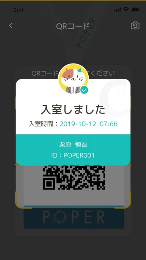 アプリをインストールして立ち上げるだけで、簡単に入退室が行えます。
