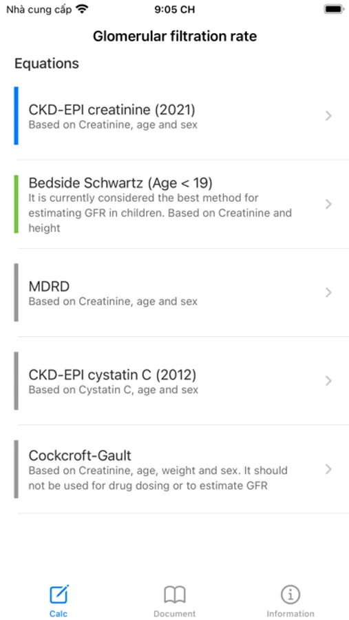 This App includes 5 equations for calculating eGFR (Glomerular filtration rate).