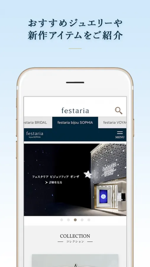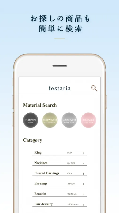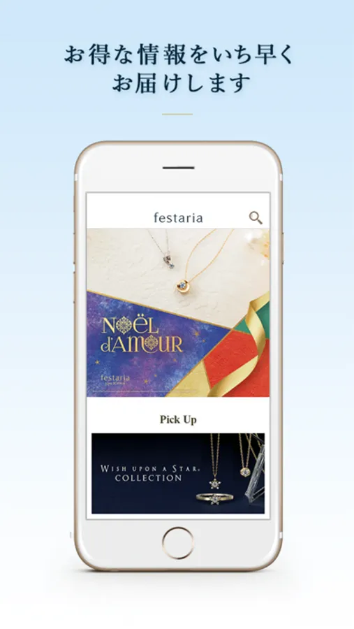 ジュエリーブランド【festaria-フェスタリア-】の公式アプリでは、新作情報やお得なフェア・キャンペーン情報をいち早くお届けいたします。