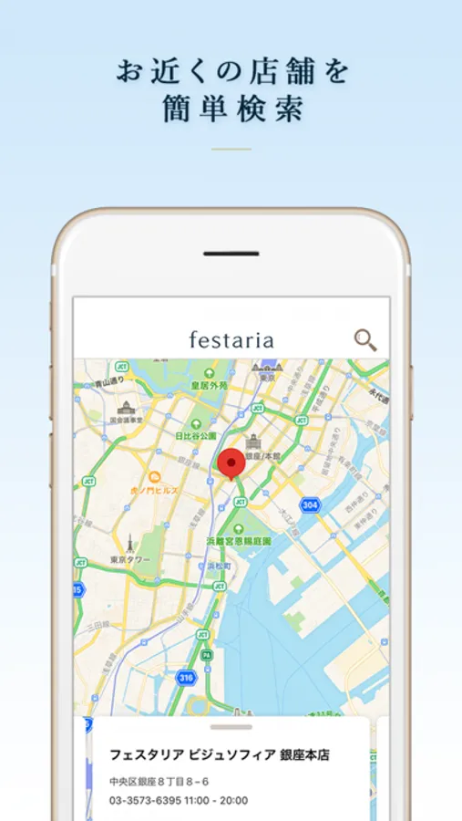 現在地や都道府県などから店舗検索が行えるほか、店舗の住所や電話番号、営業時間などをご確認いただけます。