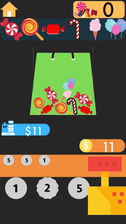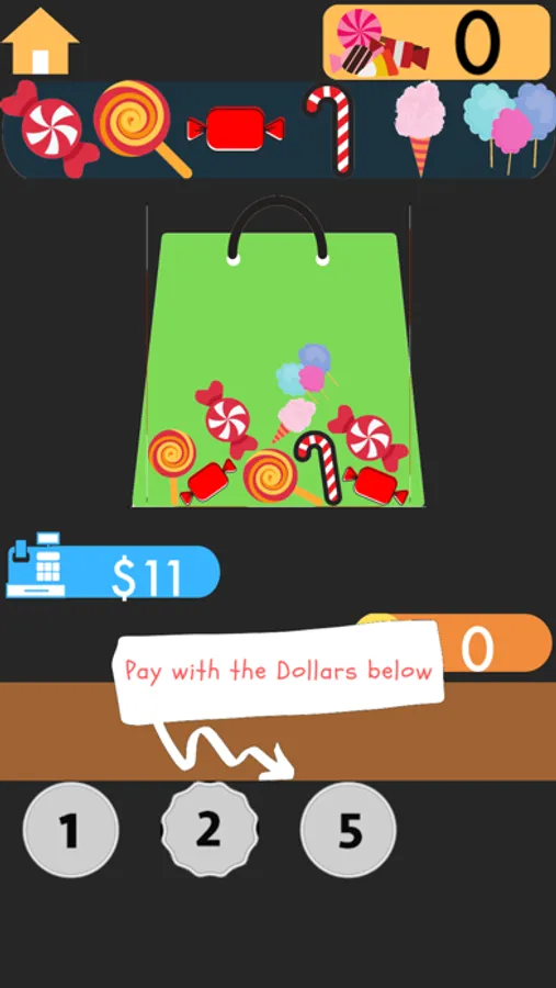 This app is a education game to learn coins from shopping candy, cake and toys.