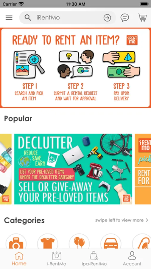 Currently, only the iRentMo rental marketplace app offer a multitude of product categories, cashless payment options, escrow system, courier drop-off/pick-up system, and item insurance options. Competing rental sites offer limited categories, lack of payment options, no escrow system, no courier service, and an absence of other convenient features that only iRentMo offer.