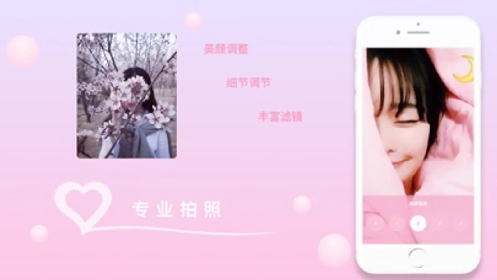 自然的美颜效果,无需复杂地操作,一键把你的自拍照变成粉嫩少女心场景。