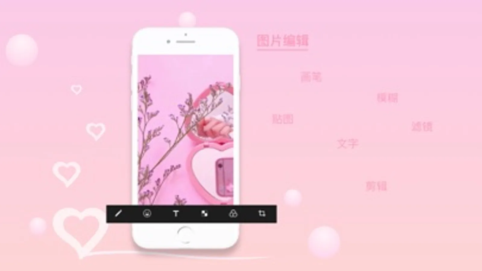 图片编辑功能包括:画笔,贴图,文字,滤镜,模糊,剪辑功能