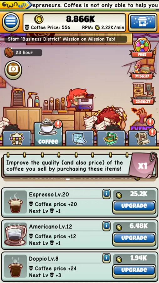- Upgrade your shop and equipment to unlock lots of Coffee Recipe
